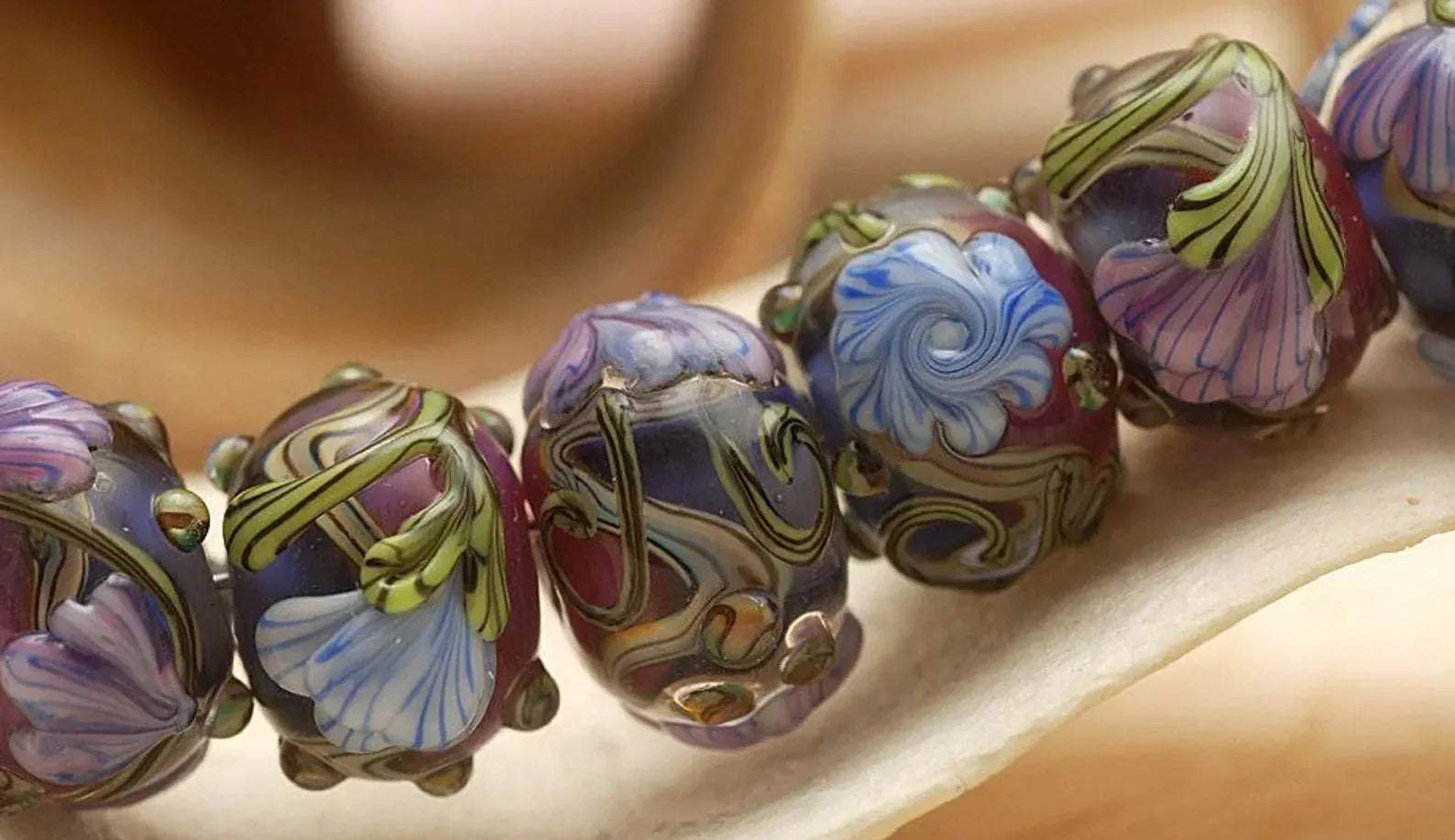Bring a touch of nature-inspired beauty to your jewelry designs with these handmade lampwork rondelle beads. Each bead features delicate raised details of flowers, vines, and dots, adding rich texture and artistry.