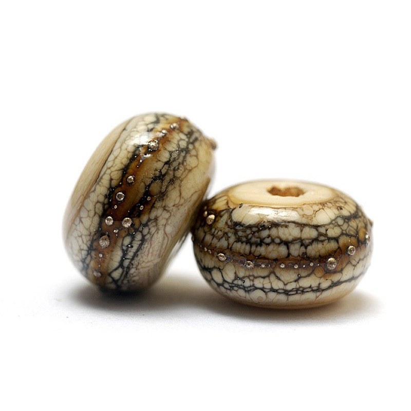 Add elegance to your jewelry projects with these handmade Dark Ivory Rondelle Beads with silver accents. The design is uniform all around, making them perfect for bracelets, necklaces, and other creative designs.