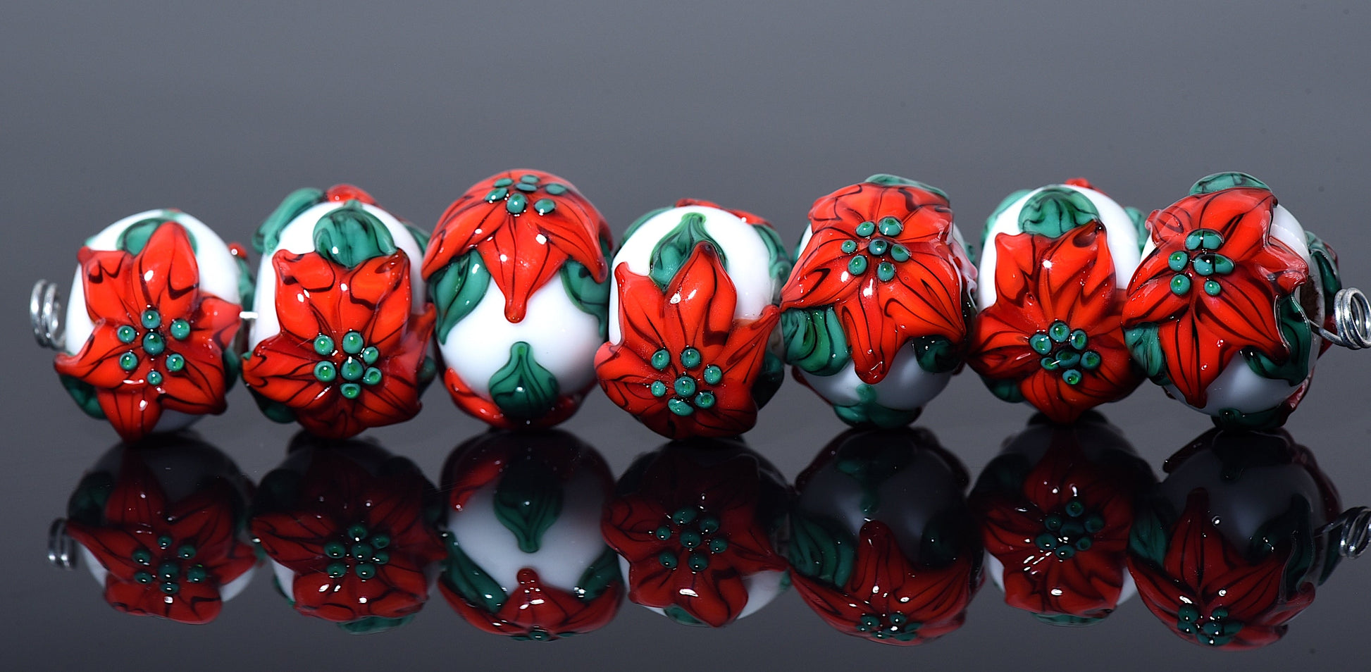 10707801 - Seven Red Poinsettia Christmas Rondelle Beads