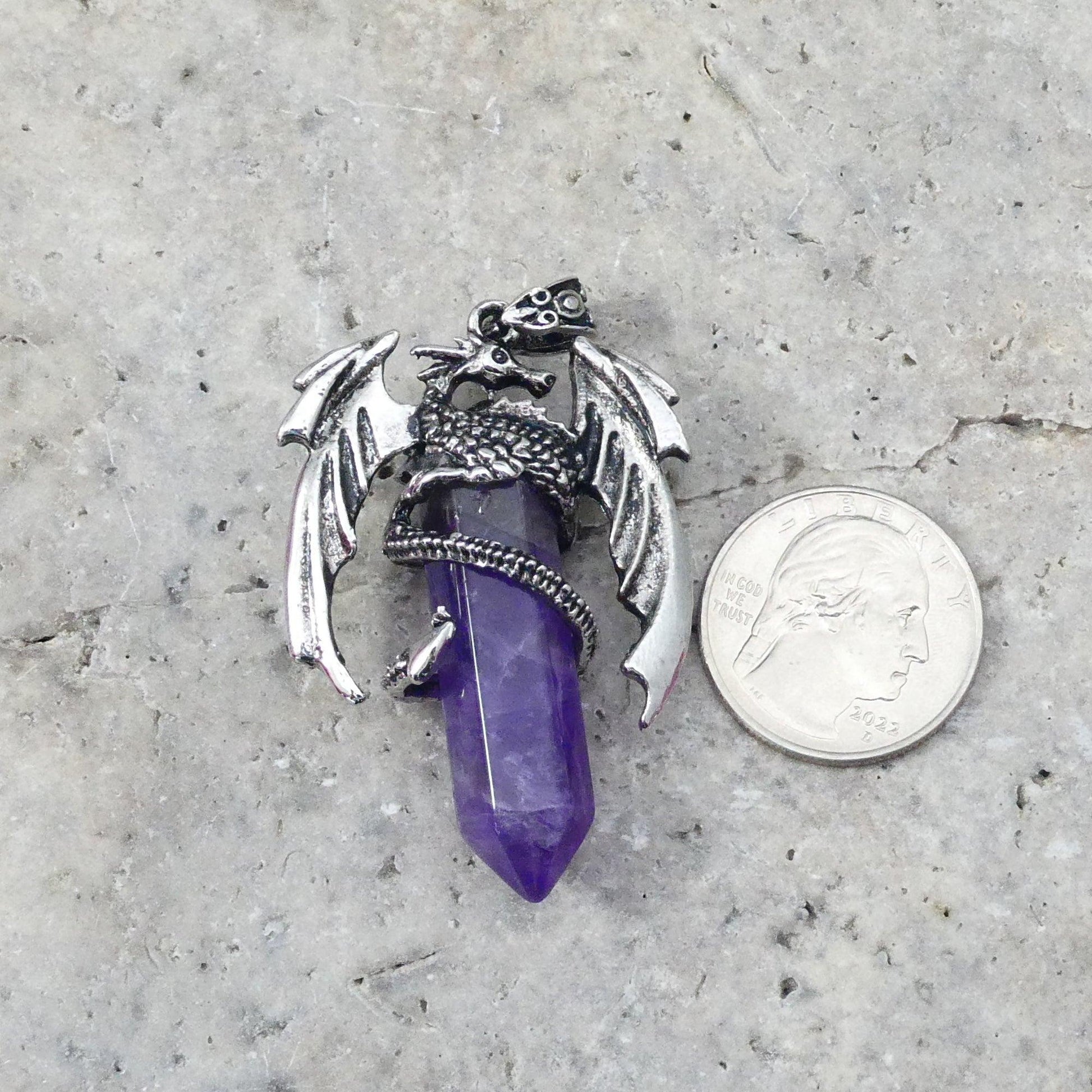 Amethyst Flying Dragon Point Pendant 34x50mm