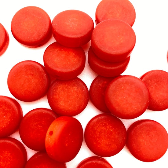 Moon glow matted poly resin Flat Disk shape. 6 beads to a lot. Made in Italy.