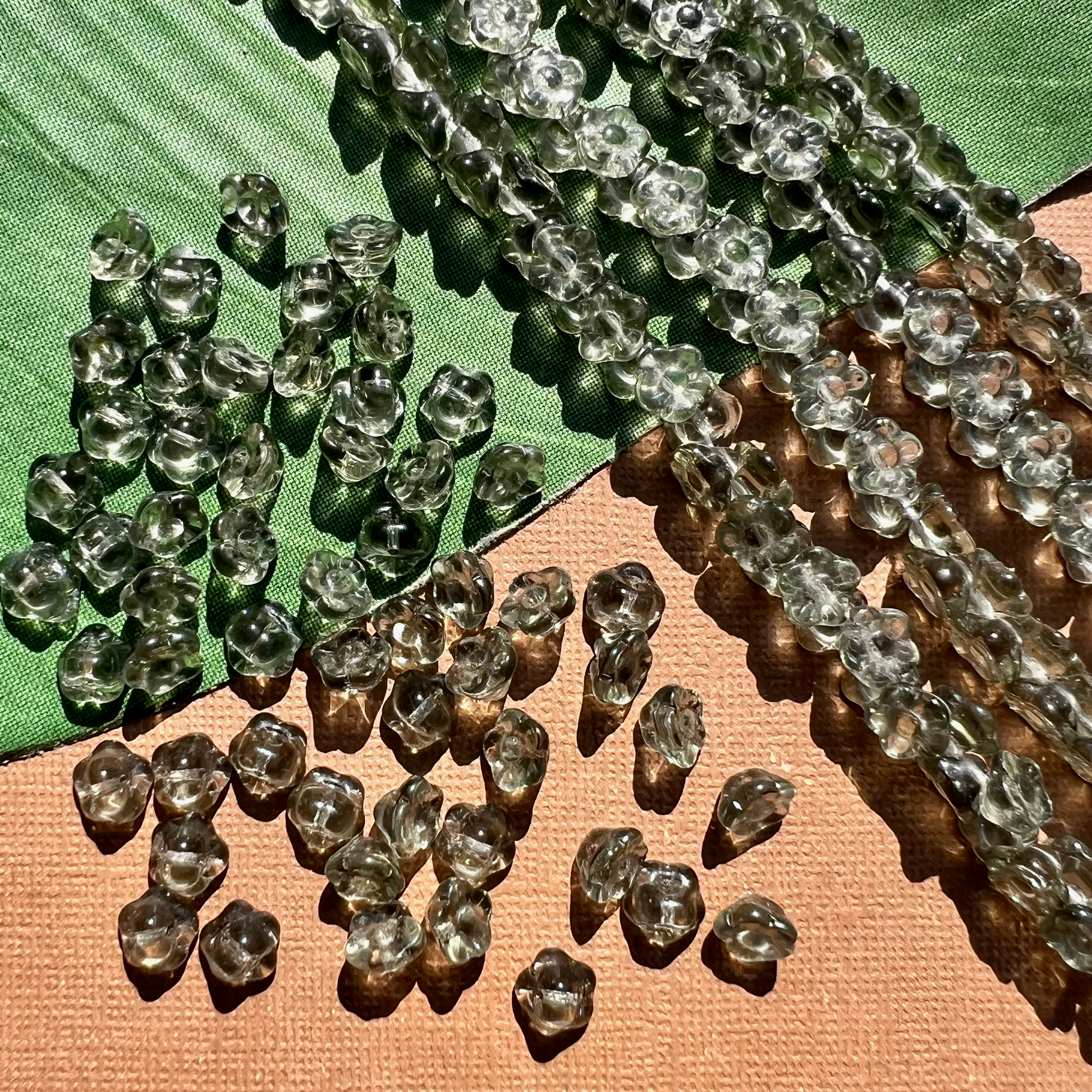 Gray green glass flower shank buttons