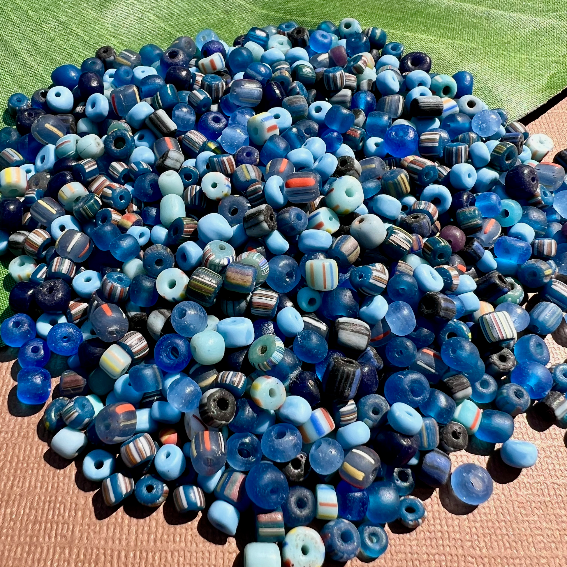 Indonesian glass beads are hand-made in Indonesia. They are often made with recycled glass and are thought to resemble old African trade beads.
