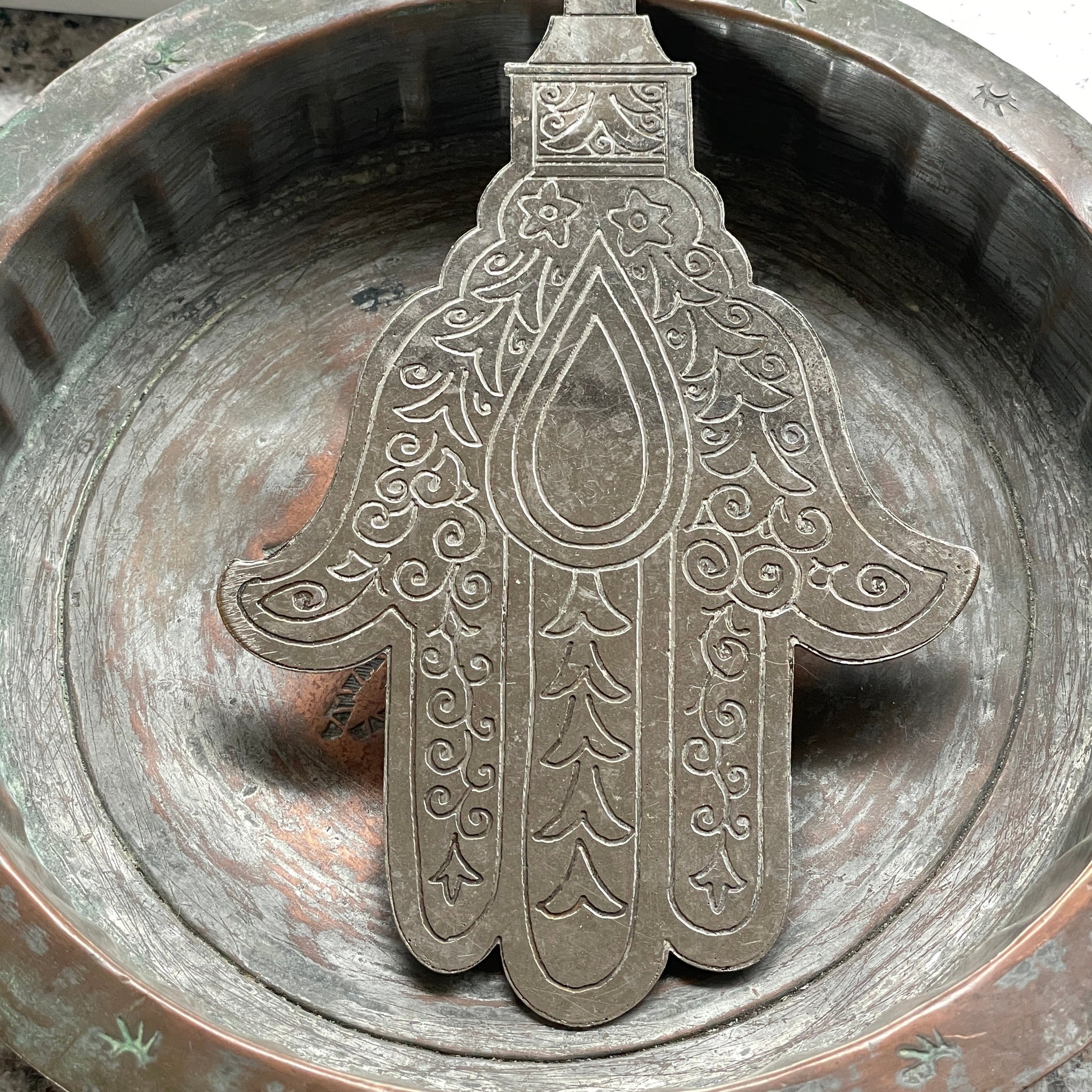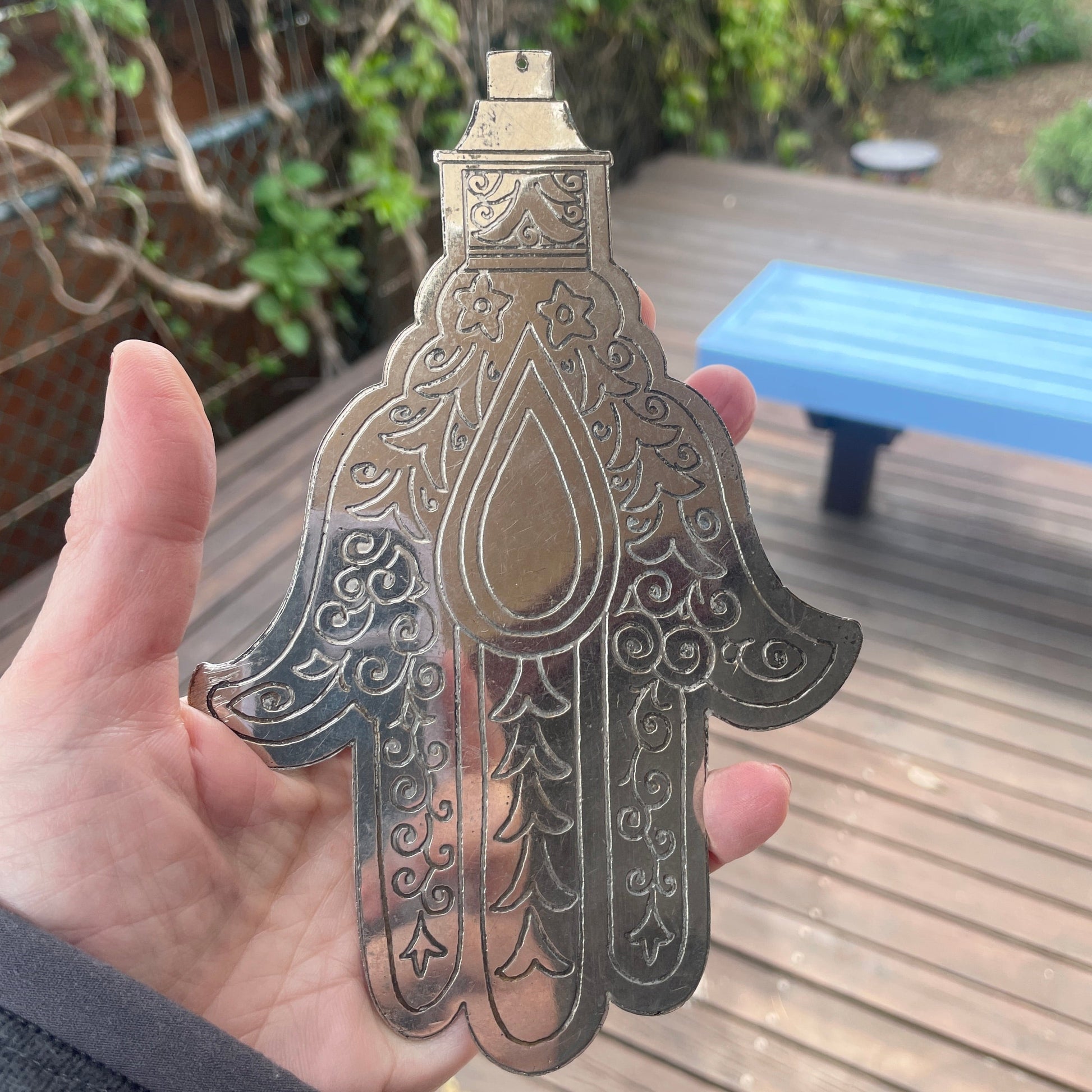 Large metal khamsa / hamsa from the Middle East.