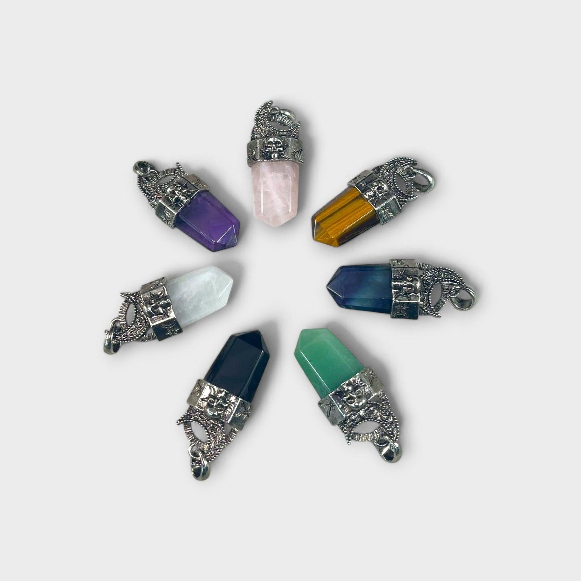 Point Pendant w/ Crescent Moon and Skull, 21x48mm (1pc)