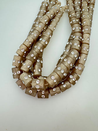 Rhinestone Bead Barrel 14mm Gray Matte with Clear Rhinestones
