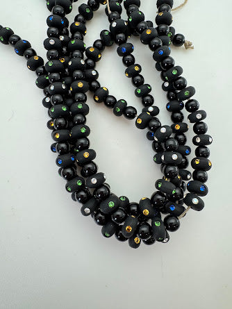 Vintage Italian polyresin Moonglow beads with Austrian crystal rhinestones. 6 Rhinestone and 6 round beads per lot. Made in Italy. Vintage stock