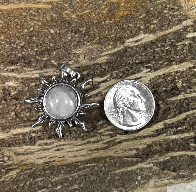 Sun Shape, Gemstone Pendants, 32mm (1 Pc) Amethyst, Onyx, Crystal Quartz, green Aventurine, Opalite, Yellow Tiger Eye