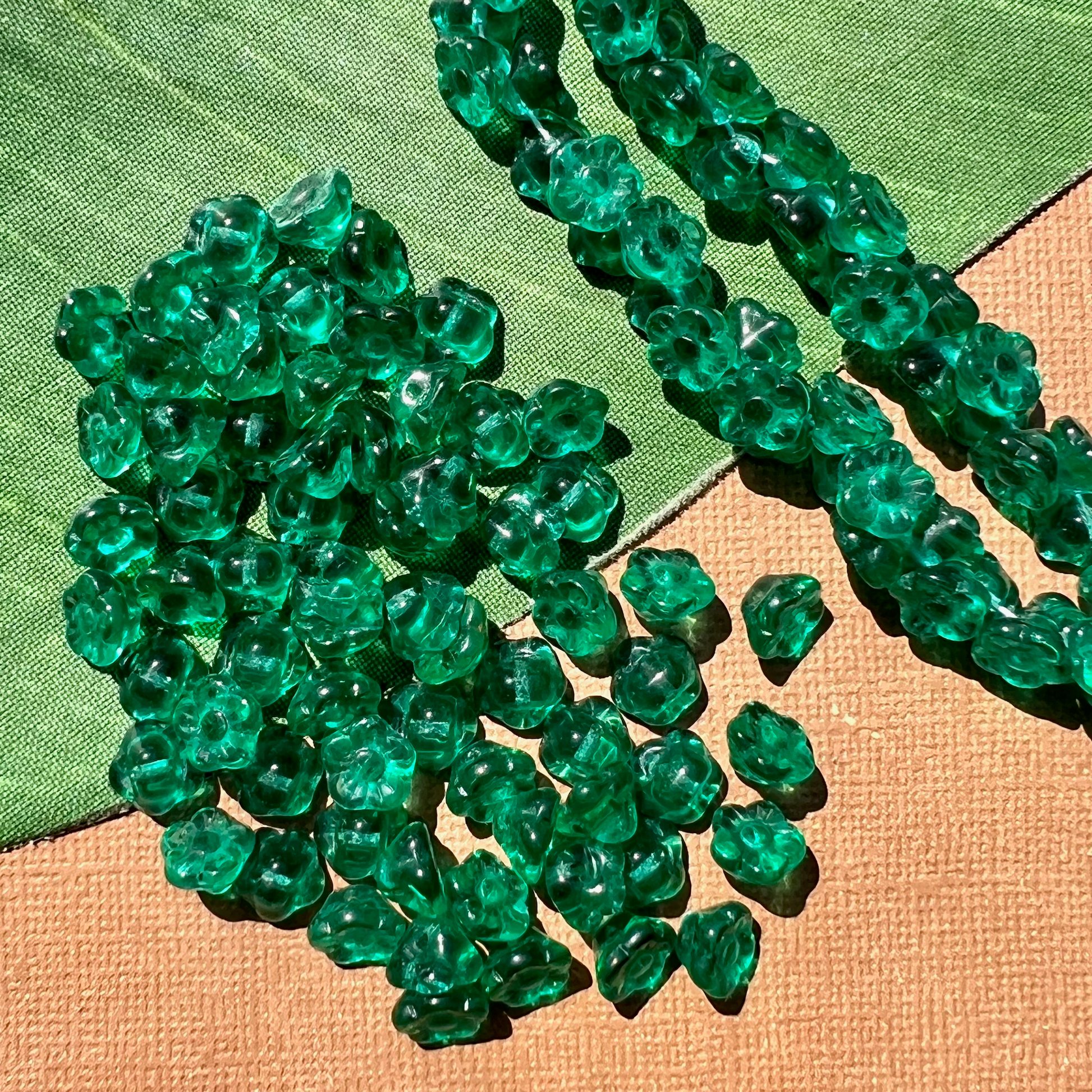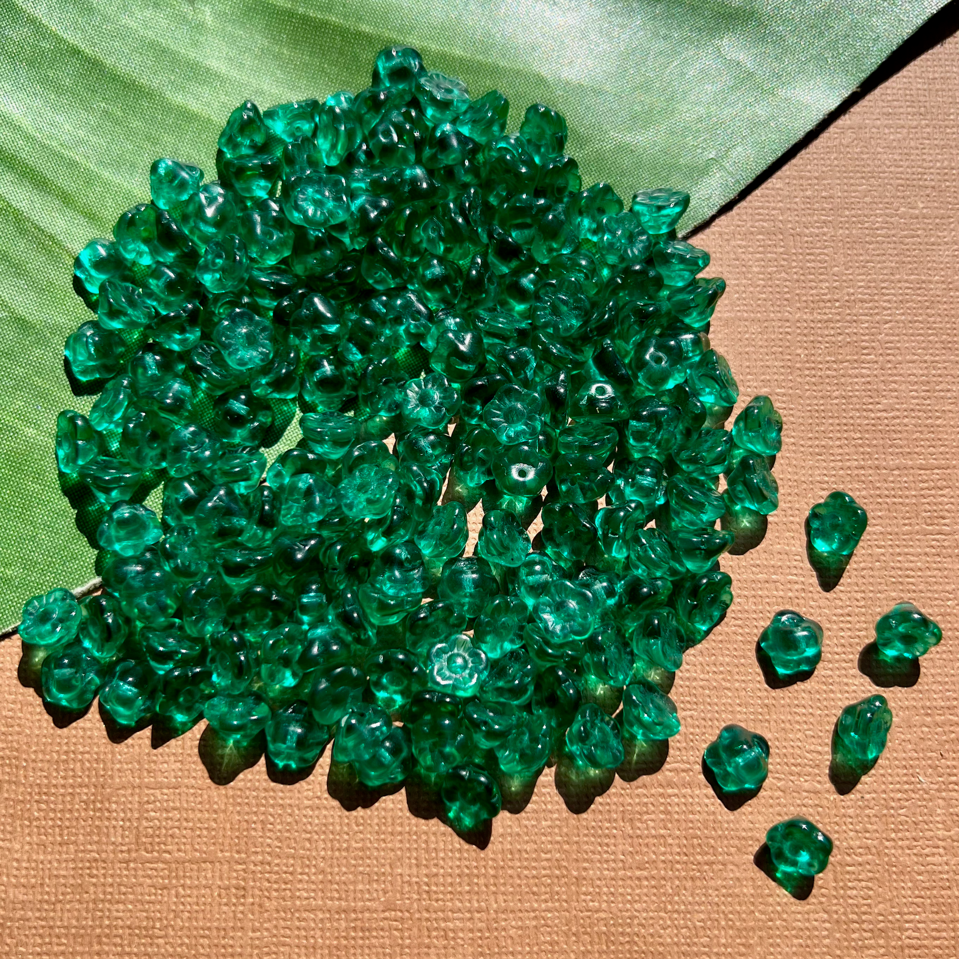 Teal glass flower shank buttons