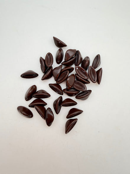 Vintage Glass Two Hole Cap 14x5mm Dark Coco