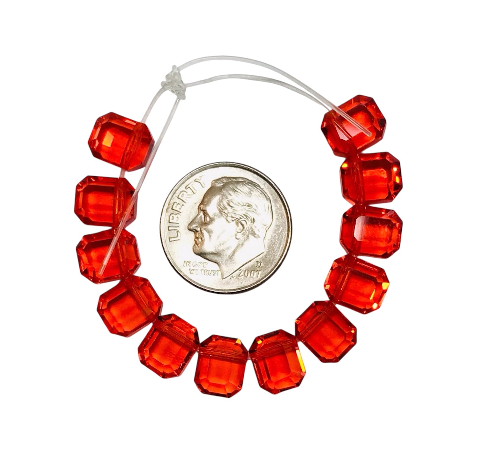 Vintage Swarovski Crystal Beads - Article 5105 - the Emerald Cut Bead - 8x6.5mm - Hyacinth. 12 pieces. These are a medium saturation transparent orange. Made in the 1950’s-1960’s. These have been discontinued for decades.