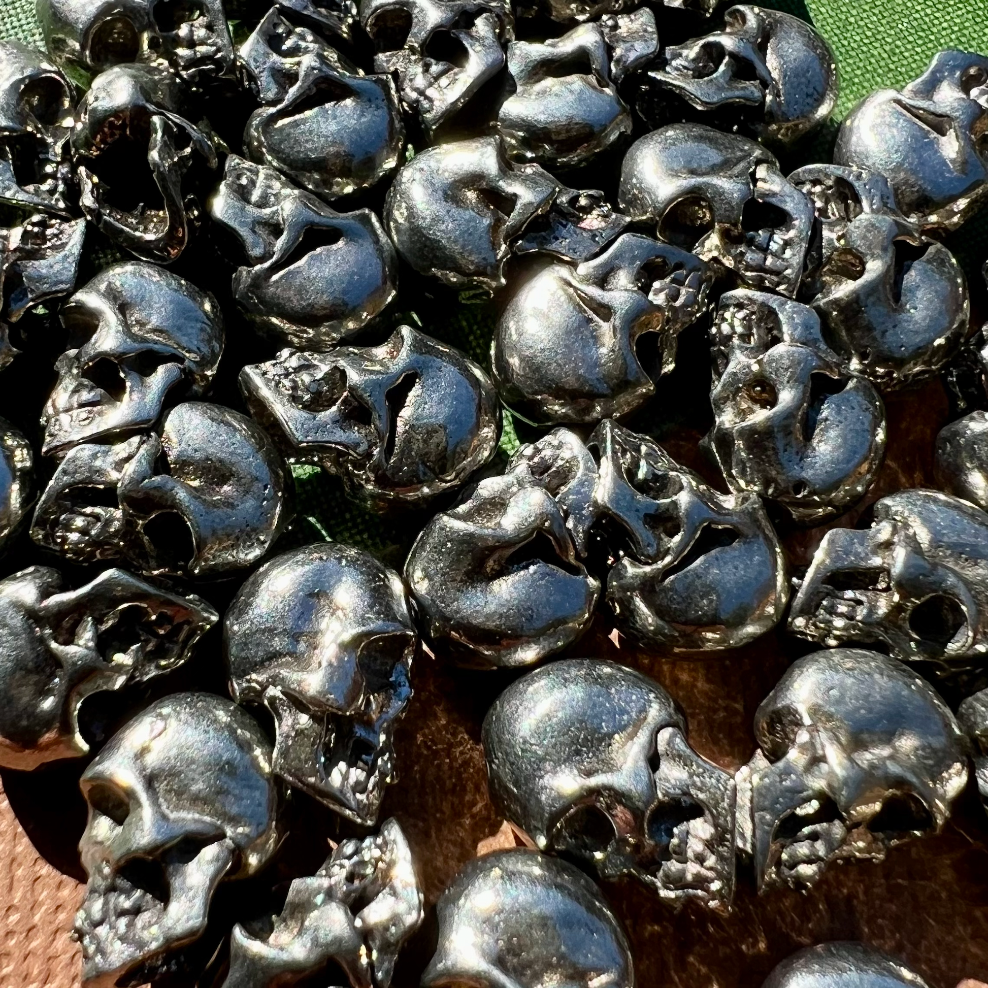 Detailed metal skull beads for all your unique designs. Hole from top to bottom.