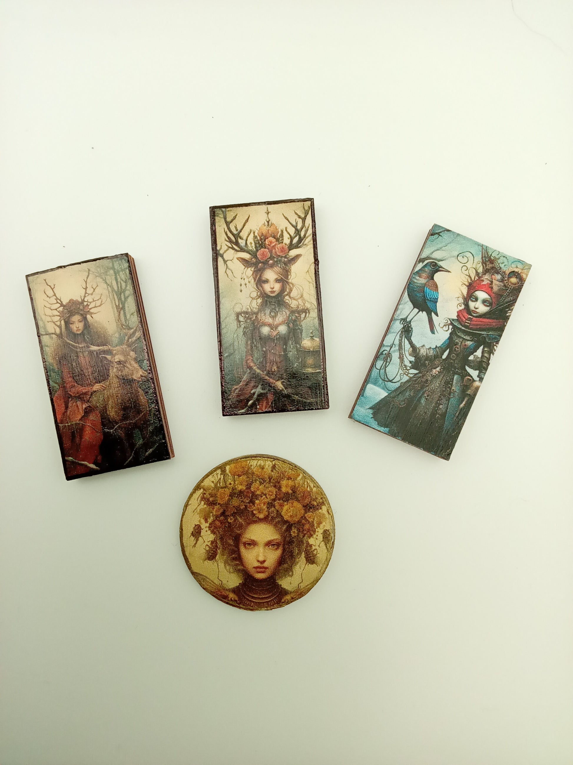 This 38mm wooden cabochon features an intricate flower crown and face design, ideal for jewelry making and mixed-media projects. The natural wood material works seamlessly with bezels, resin, and adhesive applications for professional-quality results.